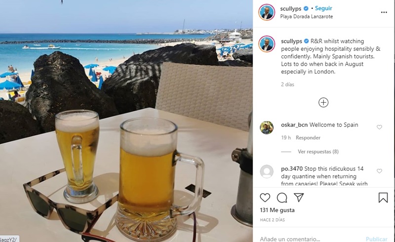 These days the Secretary of State for London, Paul Scully, was in Playa Blanca, enjoying a vacation and here he has caught the forty imposed by the British Government on all travelers from Spain.